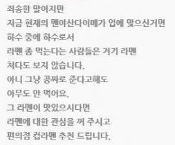 현지 스타일이라는 홍대 라멘집 가봤는데 장조림 국물인줄 알았어 | 25.12.28 19:52 | | |