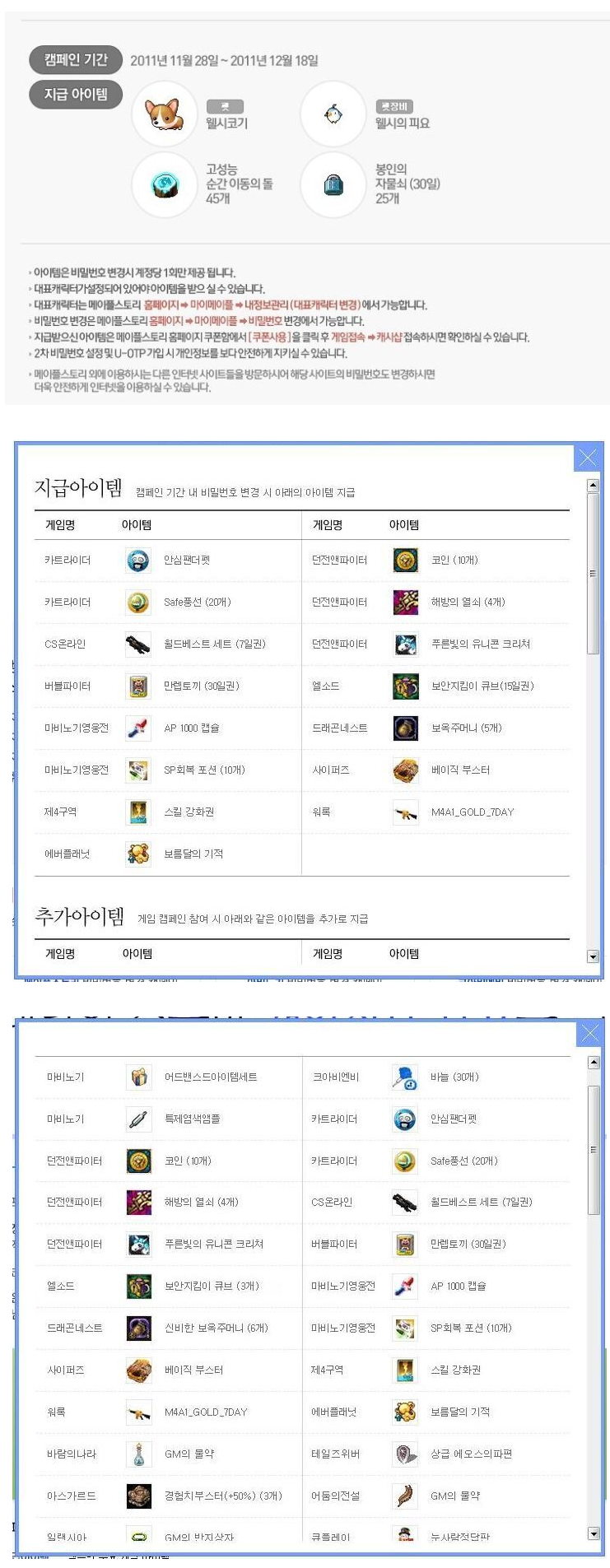 개인정보 유출보상으로 기간제 캐시템 또는 소모품으로 주던 어느 회사가 생각나군