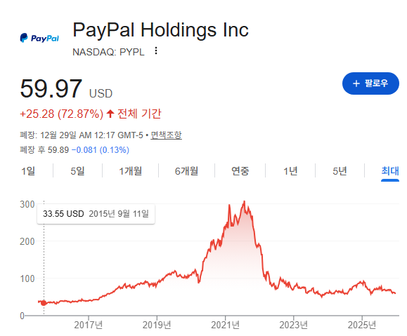 시발 페이팔ㅋㅋㅋㅋ 내가 평단가 120에 물려서 지금까지 매년 세금용으로 쓰는... | 25.12.29 17:47 | | |