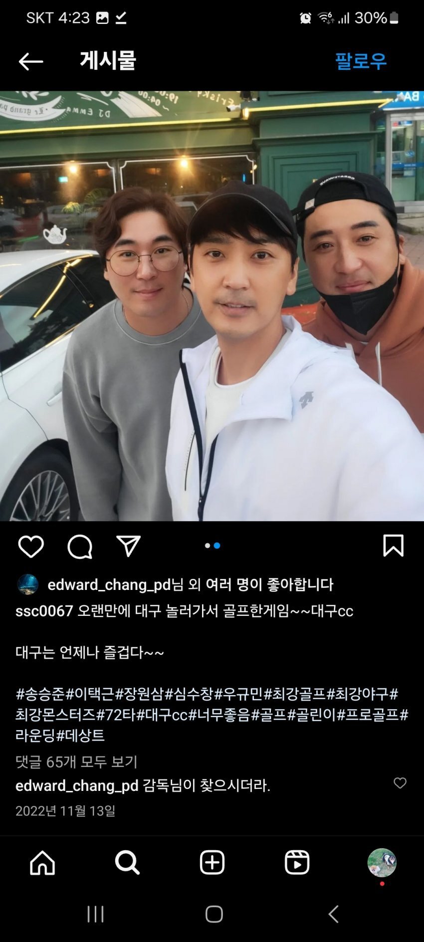 심수창의 주장은 자기가 다 만들어놓은 프로그램인데 제작진에서 자기가 부상당했다고 일방적으로 쫓아 냈다는거야 그럼 그 말이 맞는지 한번 따져보자 이거지 심수창은 최강야구 내내 어깨부상으로 경기에 제대로 나가서 활약한적이 적어 그래서 시즌 치료를 말미에 김성근 감독과 제작에서 재활과 치료를 하고 다시 합류하라고 말함(이건 방송에 나온내용임) 근데 심수창은 말 그대로 재활과 치료를 전혀 하지 않음 심지어 어깨 아퍼서 야구 못한다면서 저위에 짤처럼 골프는 엄청 치러다님 그래서 위 짤처럼 장피디가 직접 댓글 달아서 감독님이 찾는다고 말한거야 | 25.12.29 20:18 | | |