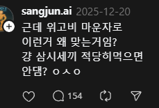 존나 불편해하는 놈들 많음. 특히 sns에.. | 25.12.30 09:35 | | |