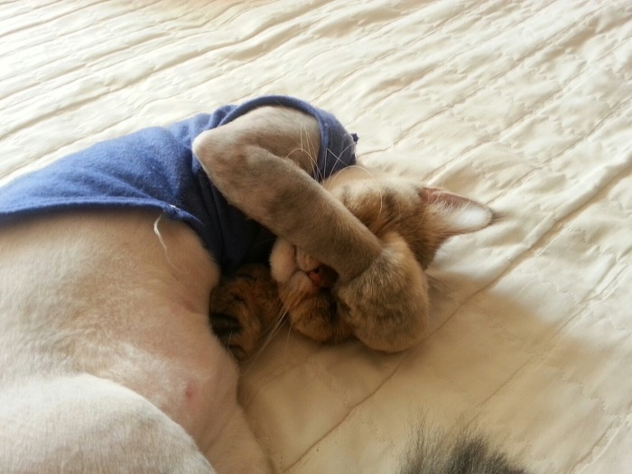고양이도 겁나 수치스러워함. 털 자꾸 뭉쳐서 싹 한번 밀어줬는데 한참을 저러고 있더라고. 그 후론 다시는 저렇게 안밀어줌.