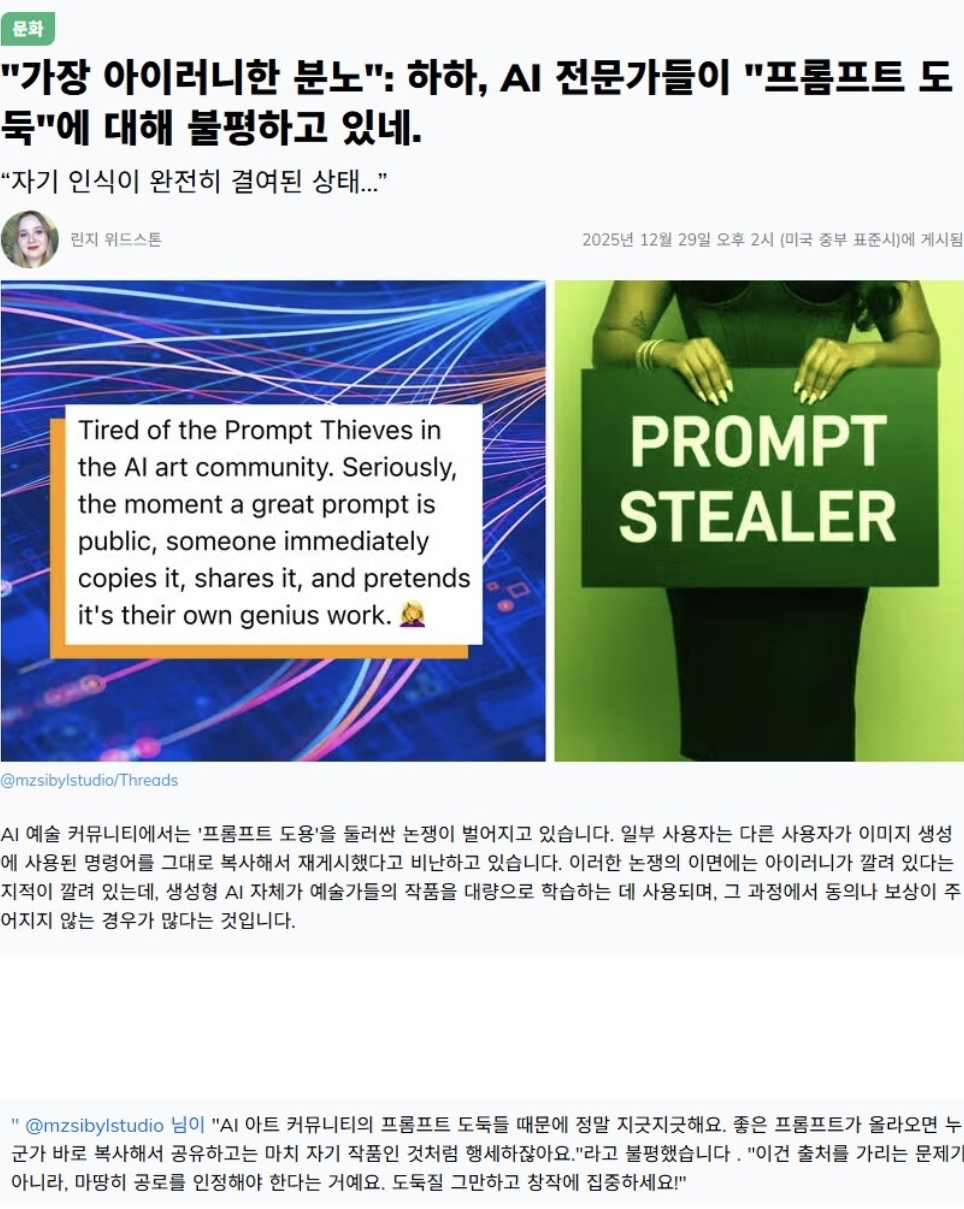 AI 그림으로 이미지 검색하면 종종 원본 그림이 나옴 AI 그림 자체가 Editing으로 만들어진다는 소리... | 26.01.02 04:16 | | |