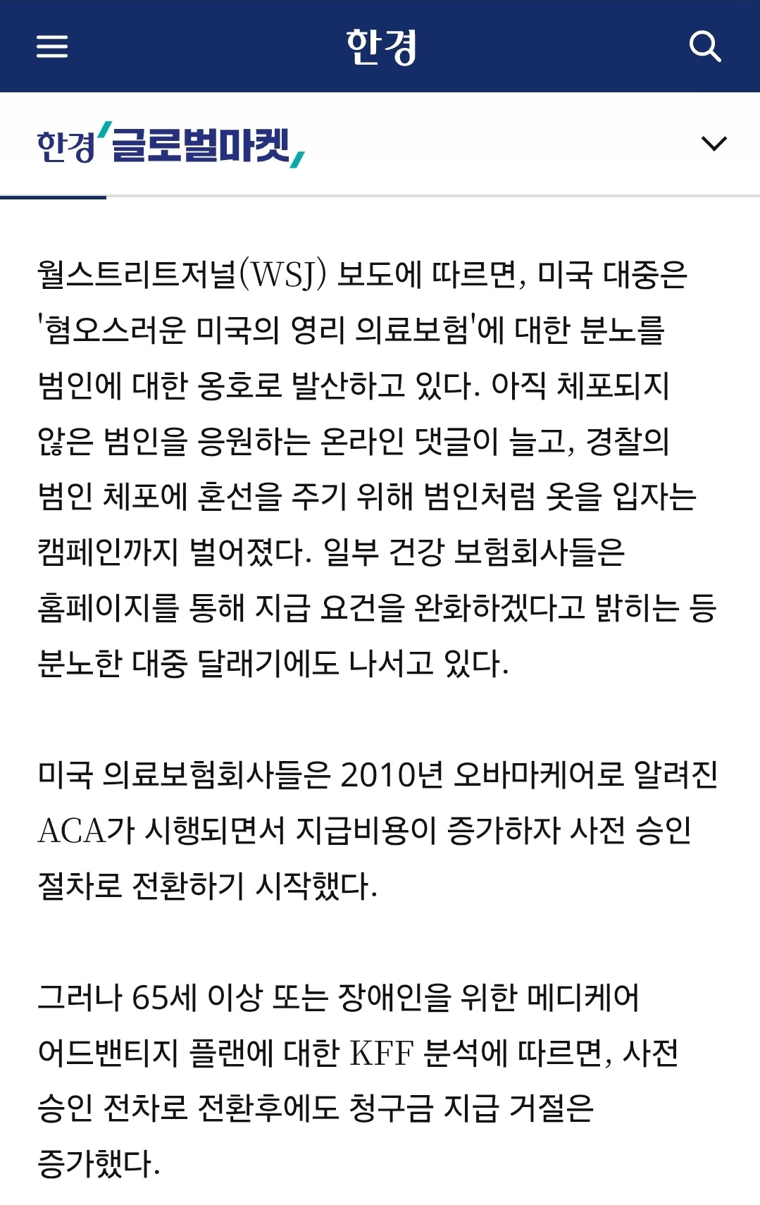 ACA 자체가 지급 거부 방지 조항이 있음 근데 그 때문에 ACA 떄문에 보험사들의 지급비용이 증가하며 다른 보험들 또한 사전 승인 절차로 전환되게 된거임 북유게에서 ACA가 미국 의료제도에 끼친 해악에 대해 다른 유저가 그걸로 선동했는데 정작 저 지급거부는 ACA가 아니라 다른 보험 보보장 플랜들이고 UHC를 비롯한 미국 헬스케어 그룹들이 AI 도입을 통해 '지급방식 효율화'를 이루면서 미승인률이 크게 올라간거임 | 26.01.03 17:18 | | |