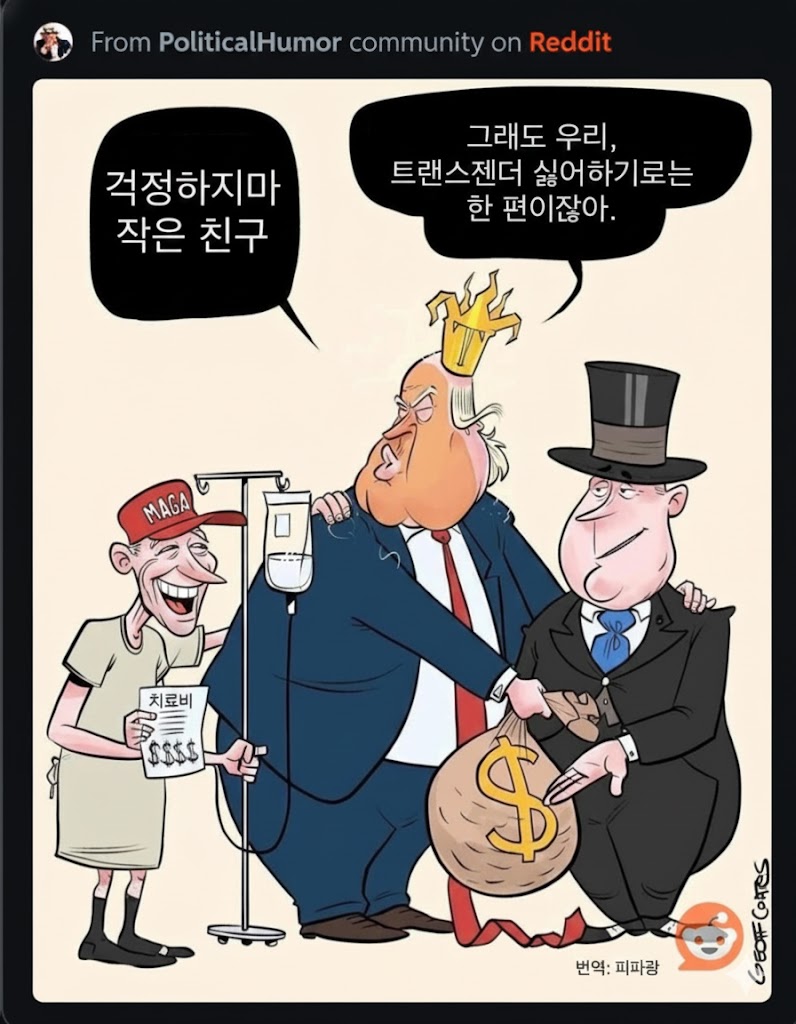 그리고 그 최저계층, 노년층 떠먹여준다는 메디케어, 메디케이드 삭감도 트럼프가 했는데 ACA까지 없어지면 어떤 꼬라지 날까? | 26.01.03 17:26 | | |