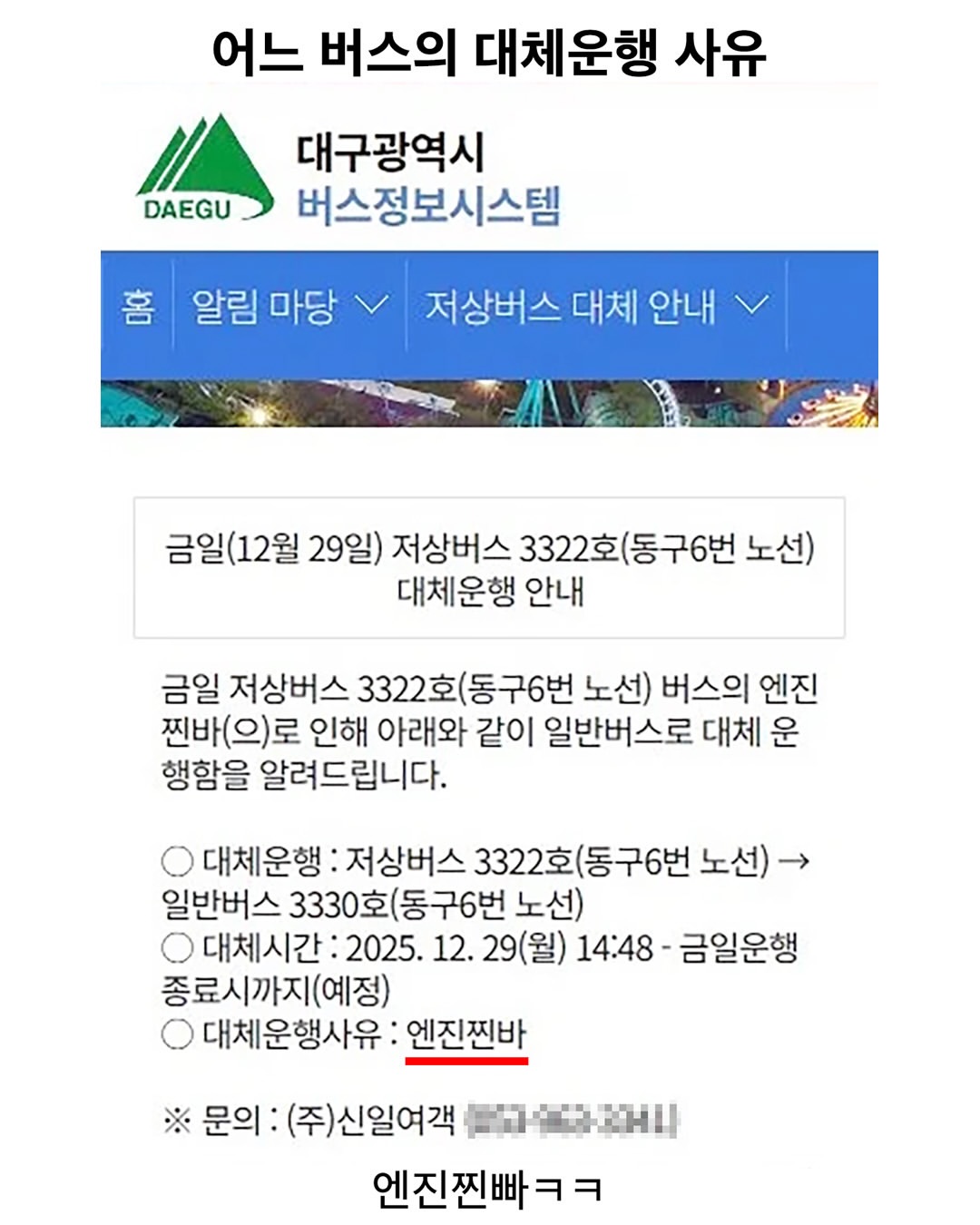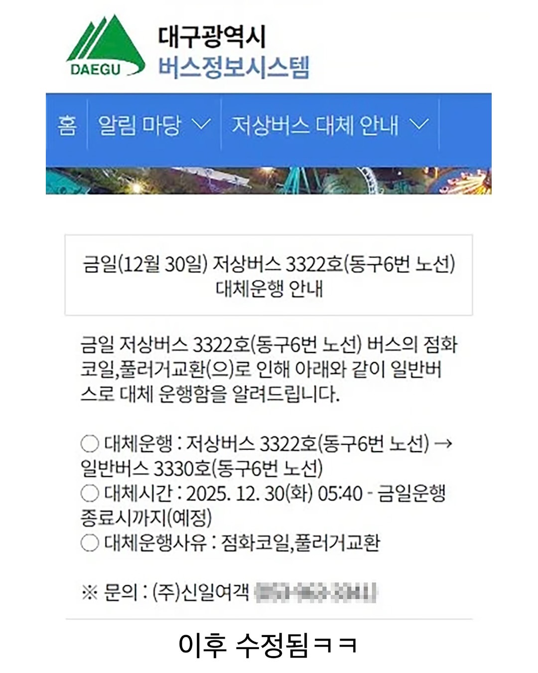 나중엔 정확하게 어디 고장났는지 다시 수정했다는데 차 번호나 저상버스에 라인까지 같은거면 동일차종일거같은데 | 26.01.09 11:54 | | |