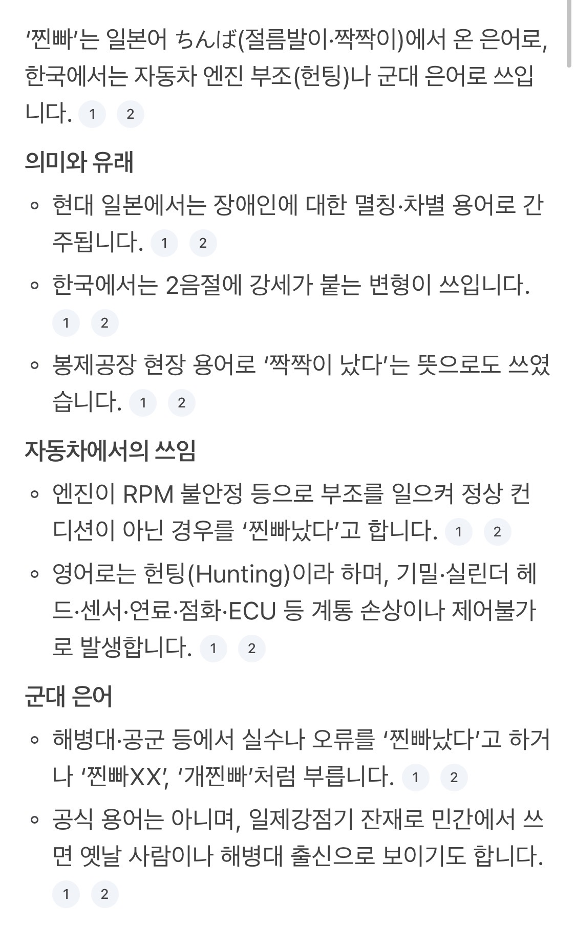 보통 엔진이 부조 현상 생기면 찐빠났다고 함 | 26.01.09 09:32 | | |