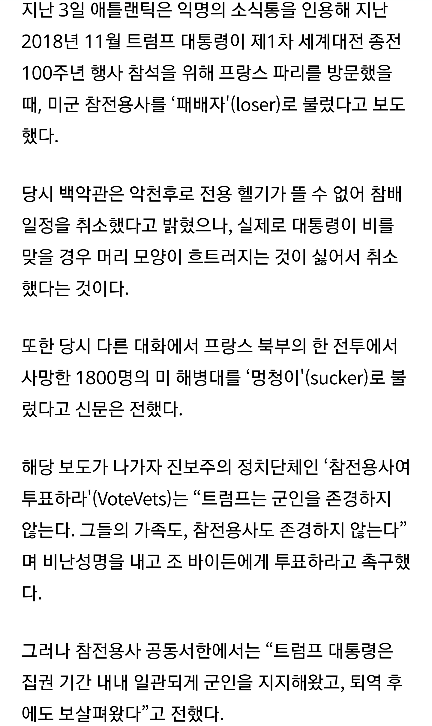 참고로 참전용사인데도 죽어라 트럼프 빨아대는 노친네들이 실제로 있음 파쇼인데 왜빨아주냐 물어보면 자기들은 파쇼가 아니라 트럼피스트고 트럼프는 파쇼 척결이 원칙이라 지지하는거라고 함 그러면서 이민자 새끼들은 전부 파쇼 빨갱이다 내쫒아야한다는 덤 그래서 2차대전 참전 용사분이 파쇼하고 싸운다고 해도 한번은 생각해봐야함 | 26.01.09 10:29 | | |