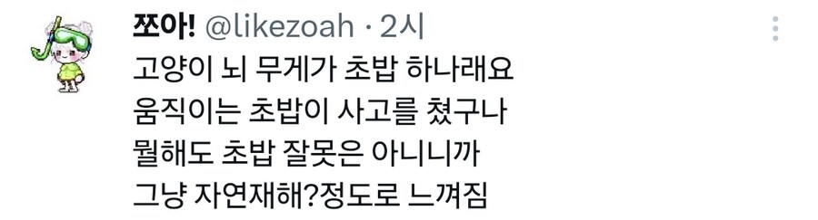 고양이 머리크기가 보통 사람 주먹 만하지 | 26.01.09 13:33 | | |