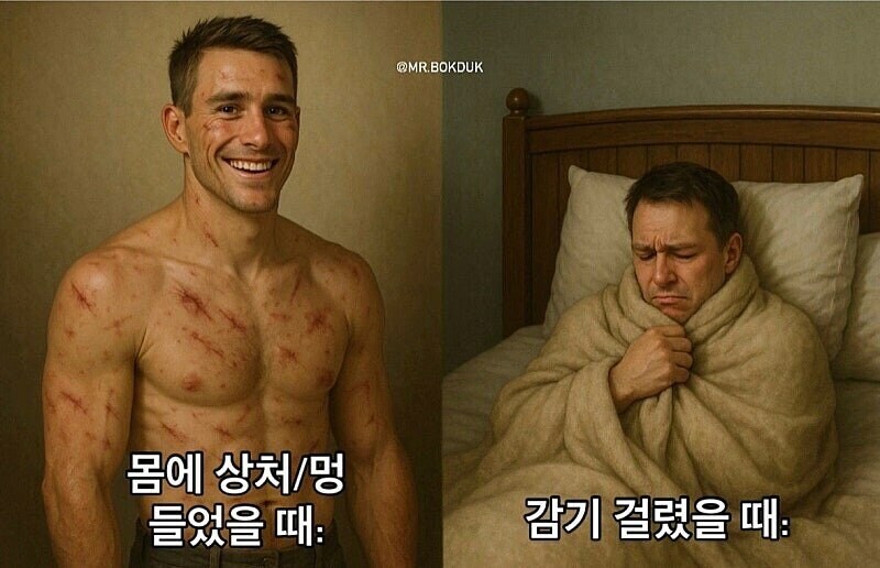 감기 몸살 걸리면 기집애처럼 울면서 병원 감 | 26.01.09 19:42 | | |