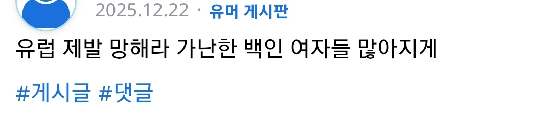ㄹㅇ 아마존에 떨궈놓으면 24시간도 못 버틸 놈이 아가리는 살아있어가지고 ㅋㅋㅋㅋㅋ | 26.01.09 22:05 | | |