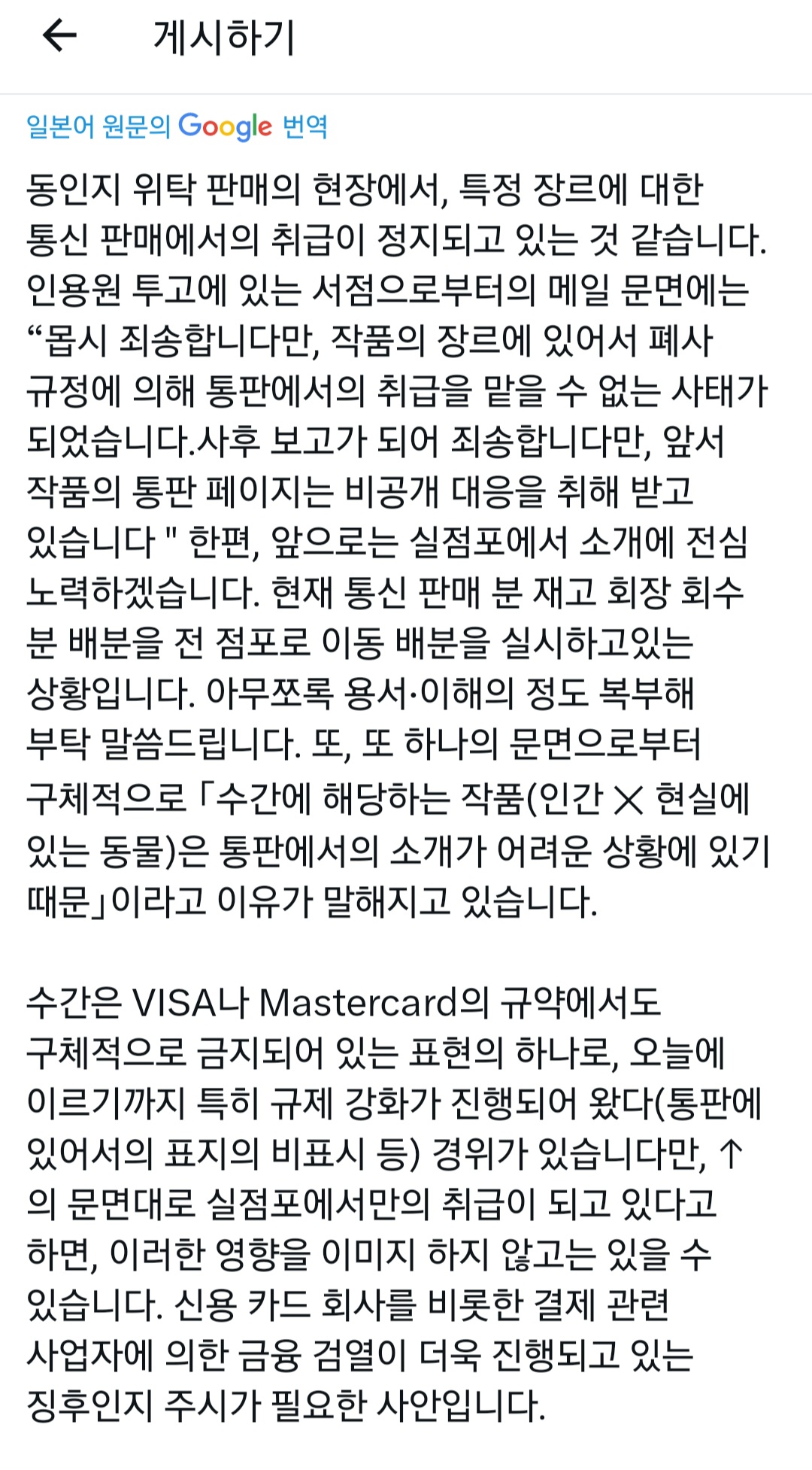 와 검열짓거리를 카드사가 할 줄은 진짜 몰랐는데 ㅋㅋㅋ....