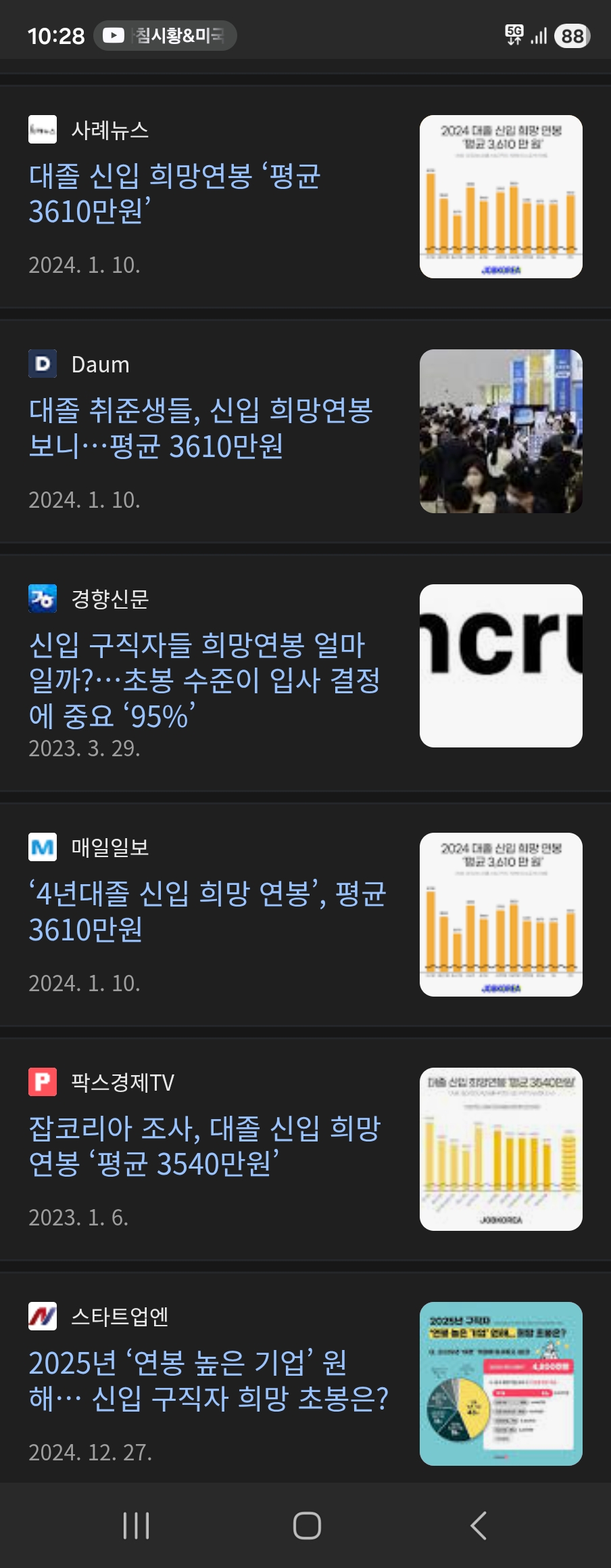 현실적인 연봉은 한 직장에 들어가서 5~6년 근속해도 3600 받기조차 개 힘들다는 거 만약 중간중간 1년 언저리 하고 그만두고 하는 식으로 물경력 섞였다면 초년생에서 7~8년 이상은 지나야 받을 수 있는 금액이 3600 언저리임