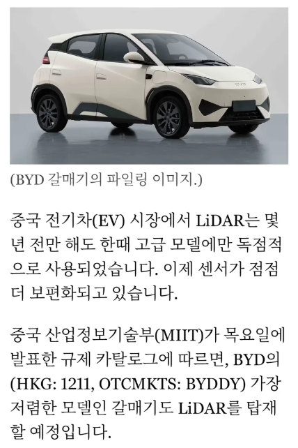 중국은 10,000달러짜리 차에 라이다 탑재 예정.. | 26.01.12 15:37 | | |