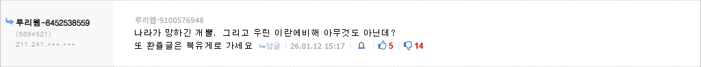 이란하고 비교해도 되는거야? | 26.01.12 15:25 | | |