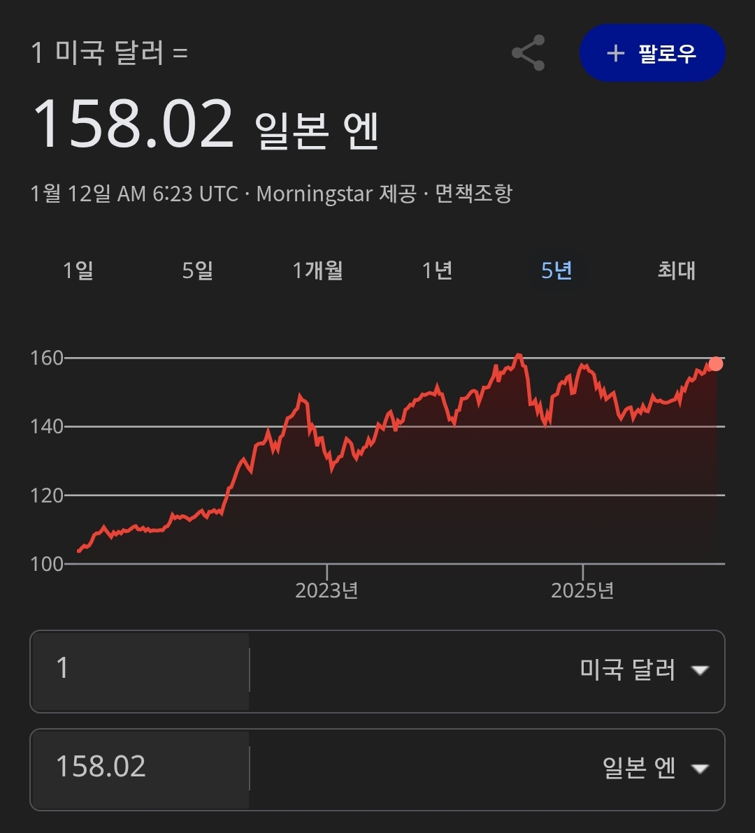 결국 금리 격차가 있는 이상 이 흐름은 바뀌질 않아 | 26.01.12 15:16 | | |