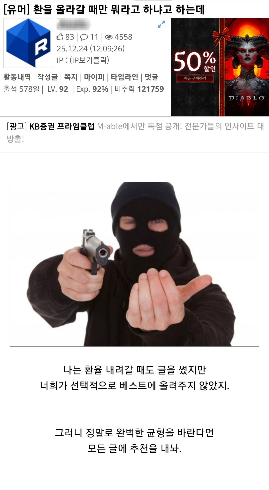 지금 환율 글 올리지 마라는게 여파때문임? 정떡이니 올리지 마라는거잖아 | 26.01.12 21:31 | | |