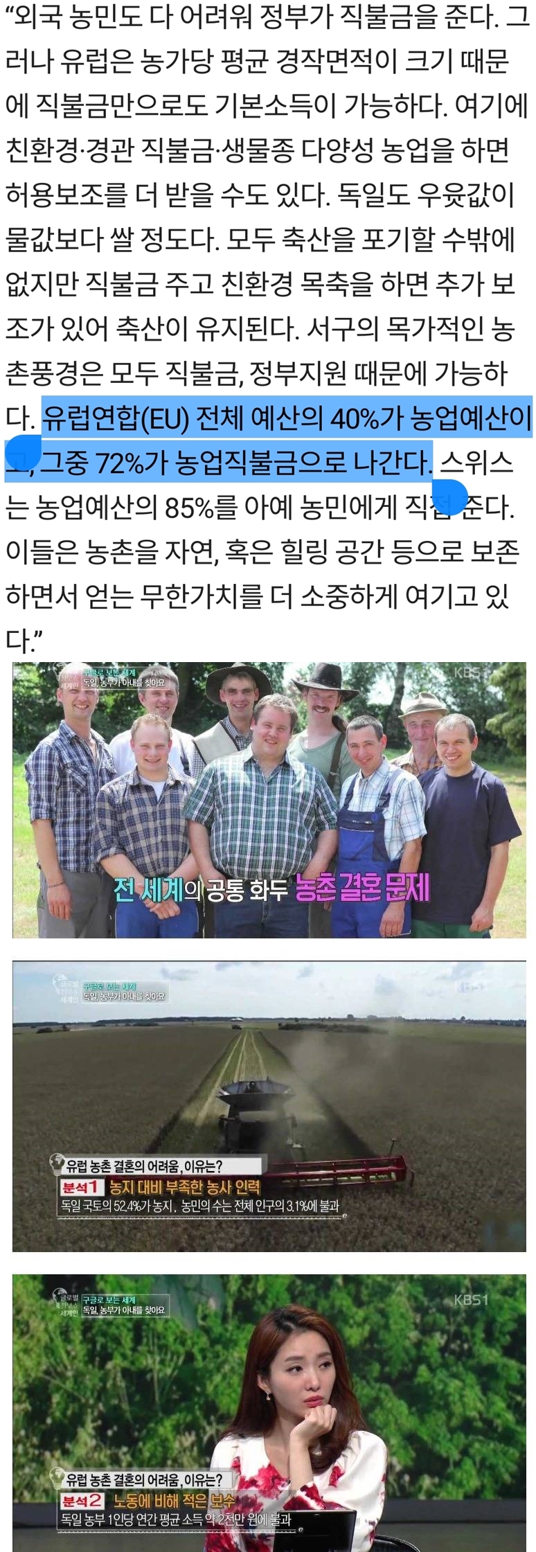EU공용예산의 1/3을 농업직불금에 쏟아붓고. 난민들을 노예급의 값싼 노동력으로 써먹고. 그럼에도 불구하고 무려 독일의 독일인 농부들이 연소득(연봉)이 2천만원. 가난해서 장가도 못감. | 26.01.13 08:48 | | |