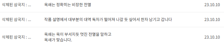 그리고 삼국지 쪽은 참 미묘한게 많은건 어쩔수 없긴 함. 연의에 비롯된 표현이나 일화가 우리 상상 이상으로 많은데, 막상 연의가 나오기 전의 시기나 삼국지 타임라인상 이전에 나오다 보면 참 안타깝다가도 그냥 그러려니함. | 26.01.13 05:58 | | |