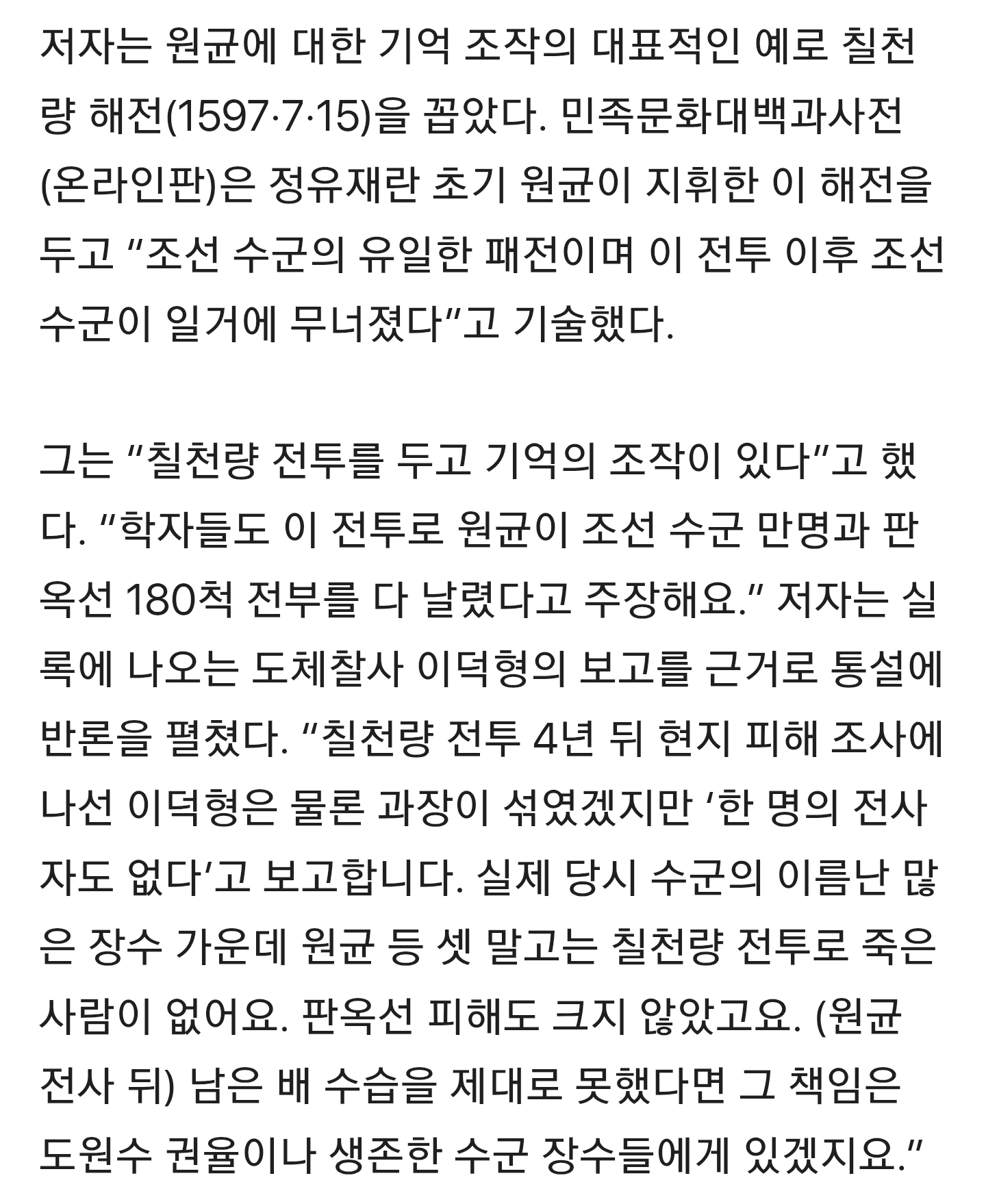 저 기록 변경이 프레임 때문인지, 아니면 원균의 거짓 전과 부풀리기가 밝혀지면서 인지.... 저자가 자료를 너무 자의적으로 해석함 | 26.01.15 11:12 | | |