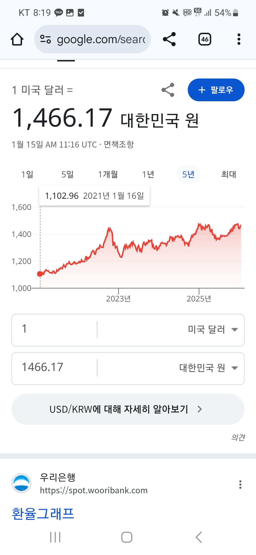 아까 낮에 증권 투자자 의견으론 그것도 영향 있다고 하긴하더라 환율을 예전엔 외국인 매도 매수로 결정됐는데 지금은 내수가 커져서 국민들이 달러 많이 산것도 영향 꽤 줬다던 | 26.01.15 20:16 | | |
