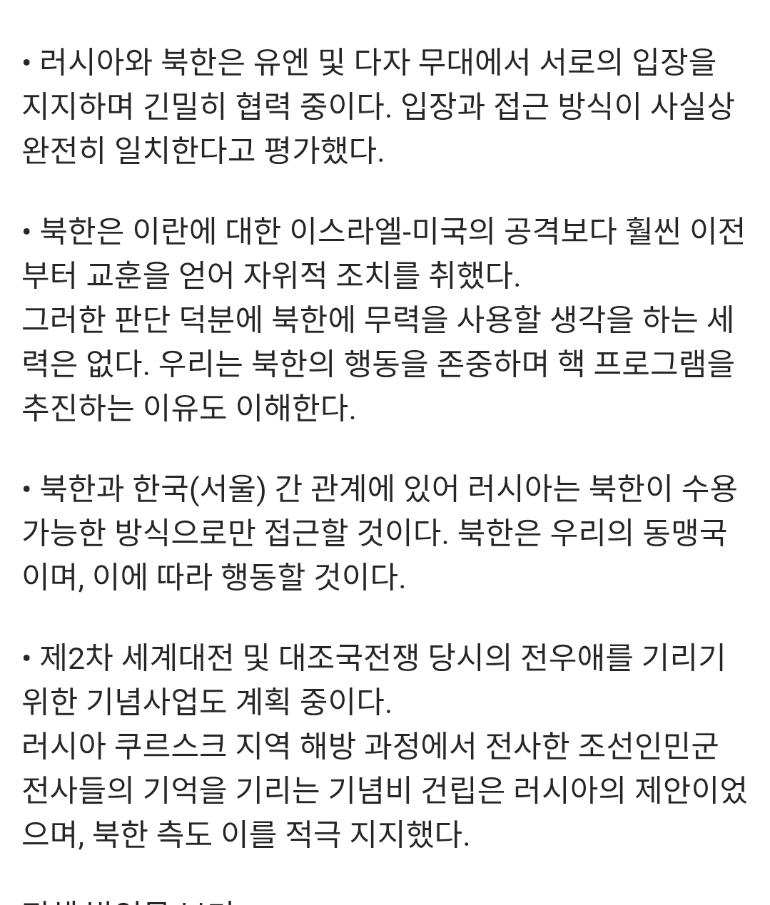저기 우리랑 러시아 외교에서 북은 부가적인 거여서.. | 26.01.16 09:13 | | |