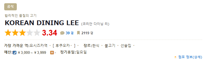 타베로그 3.3이면 괜찮은 가게는 맞나보네