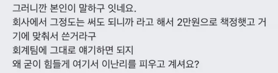 차라리 한 1.5만원 정도만 긁었어도 회계팀이 저정도로 뭐라하진 않았을거임 | 26.01.17 18:03 | | |