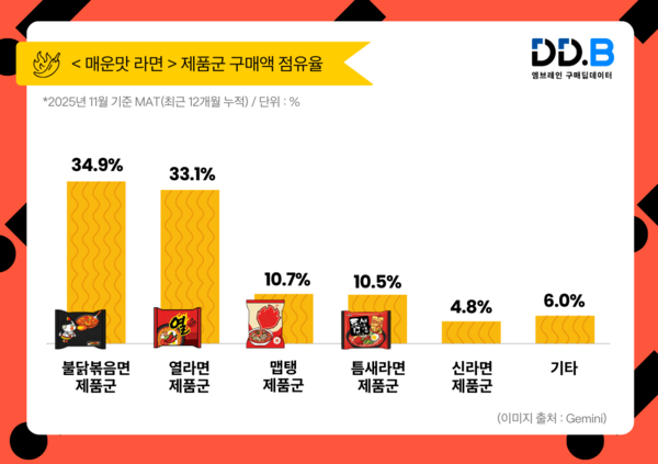 '매운 맛이 나는 라면'을 구입할때 뭘 구입하는지에 대한 조사인거같음 즉 아 매운거땡긴다 할때 먹는거 = 신라면은 매운 취급도 못받는다 | 26.01.18 05:55 | | |