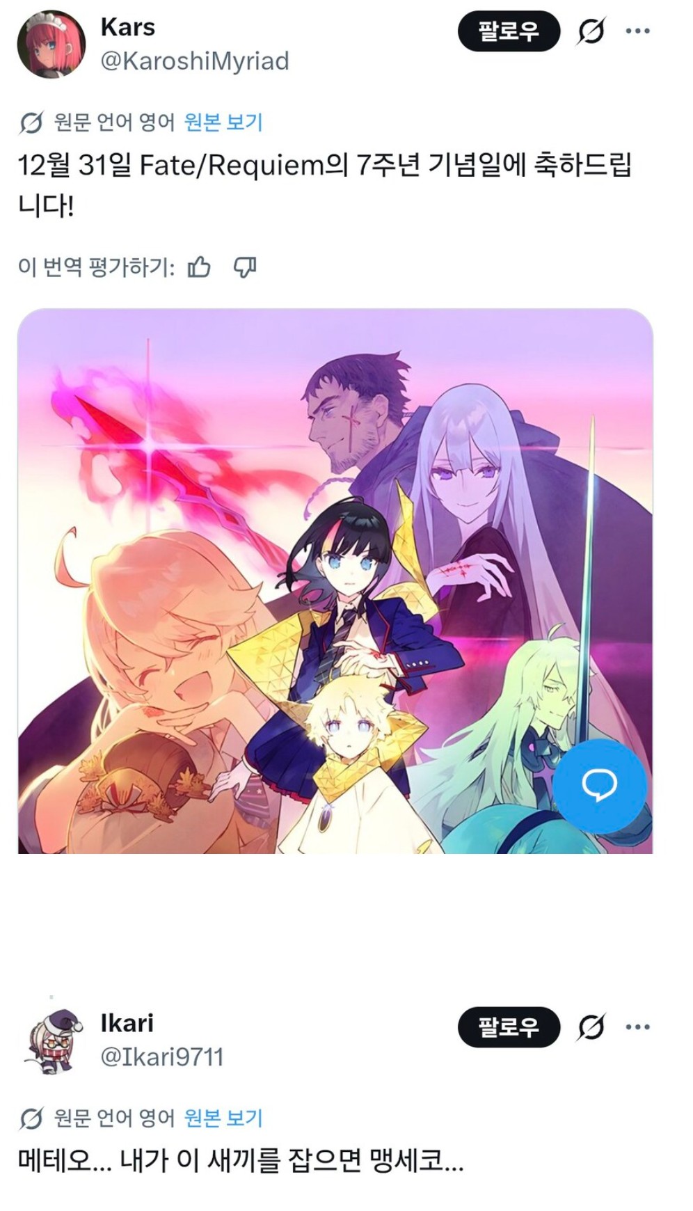 페그오 란슬롯이 특히 브리튼 란슬롯 느낌 강하긴 하지 ㅋㅋㅋㅋ 이벤트 나올 때 란슬롯이랑 브리튼 갈까마귀 형태의 말투랑 은근 비슷해서 | 26.01.19 10:42 | | |