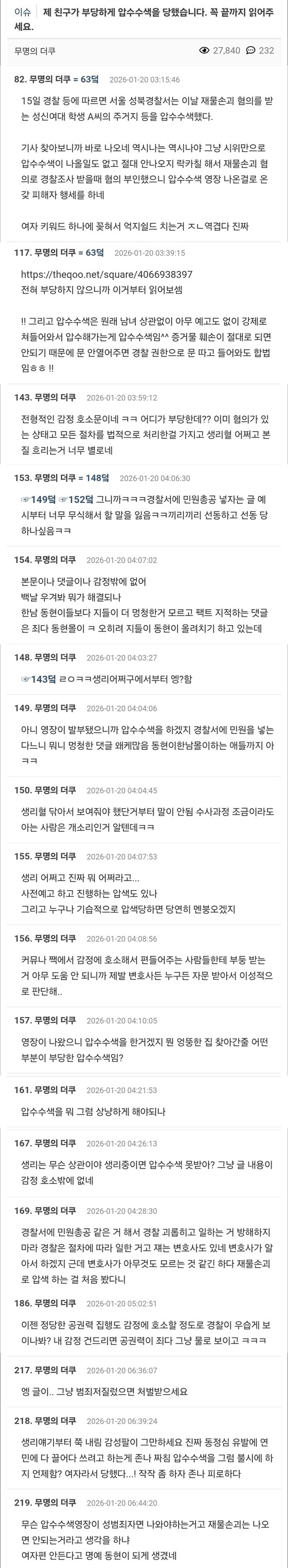 ???: 아 모르겠고 한남 흉자는 내 합의금이나 보태달라 이기야~ | 26.01.20 08:35 | | |