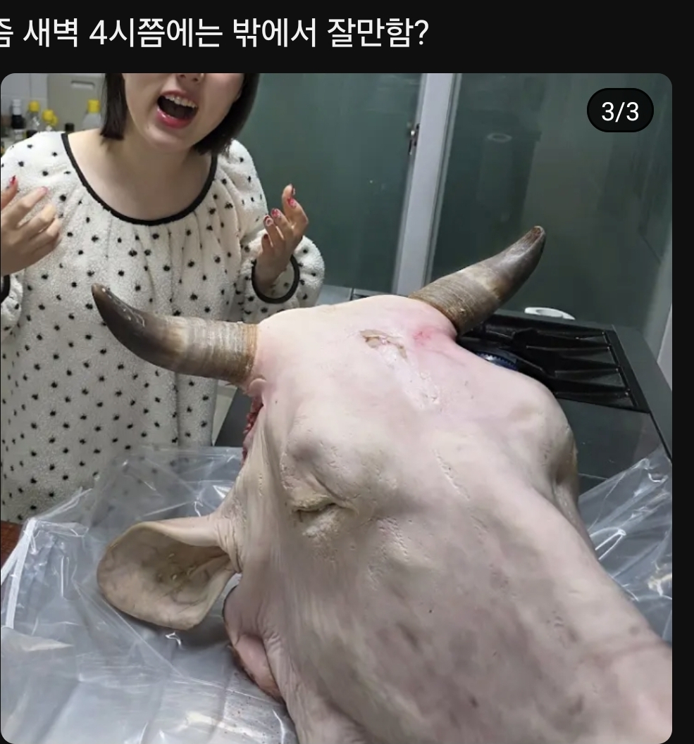 돼지머리로 고사지낼때 웃는 사람 없지? 난 그거 소머리에도 동등하게 적용되야된다고 생각한다.. | 26.01.23 13:07 | | |