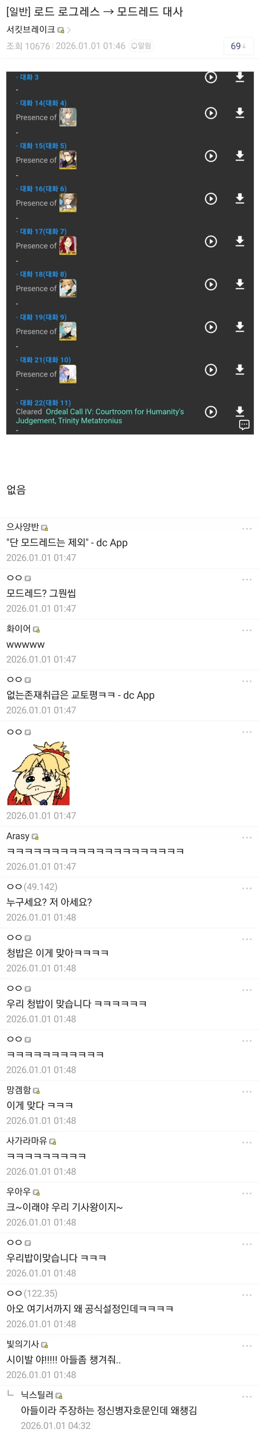 완벽한 청밥의 세상에 모드레드 따위는 없다 < 진짜 파멸적인 이야기임... | 26.01.24 00:49 | | |