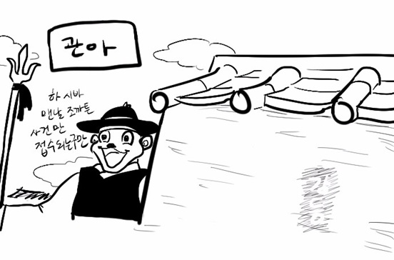 '조로 이새끼 농사진거 나눠준다 했더니 왤캐 늦지?'