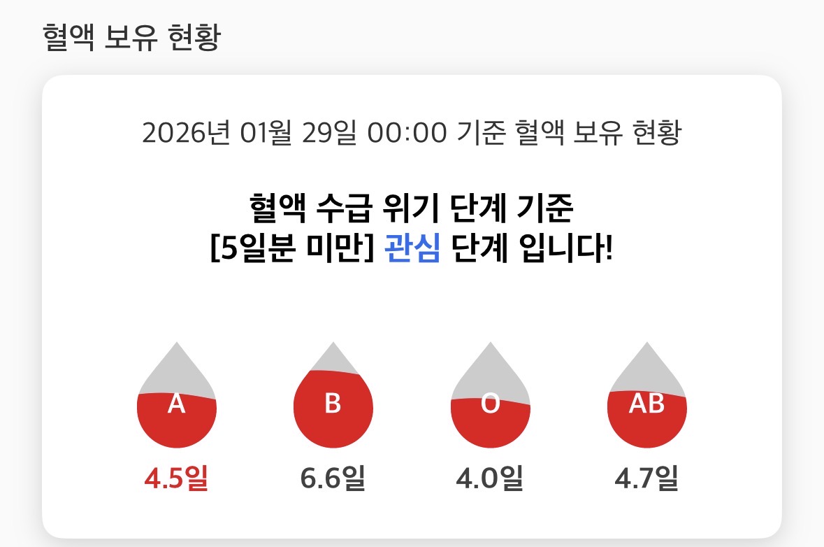 혈액별로 2일 이상씩 보유량 늘었드라 ㅋㅋㅋㅋㅋ