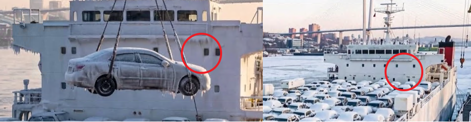 당연히 RO-RO 선과 같은 전용 컨테이너선 이용하는데, 이거 운임비용 비싸고 해당 선박 보면 일반적인 컨테이너선이 아니라 딱 봐도 비정기 선박임. (아마 러시아 무역 제제 때문에 신형 차가 아니라 일본에서 폐차하려는 중고를 가져온 것으로 예상됨.)