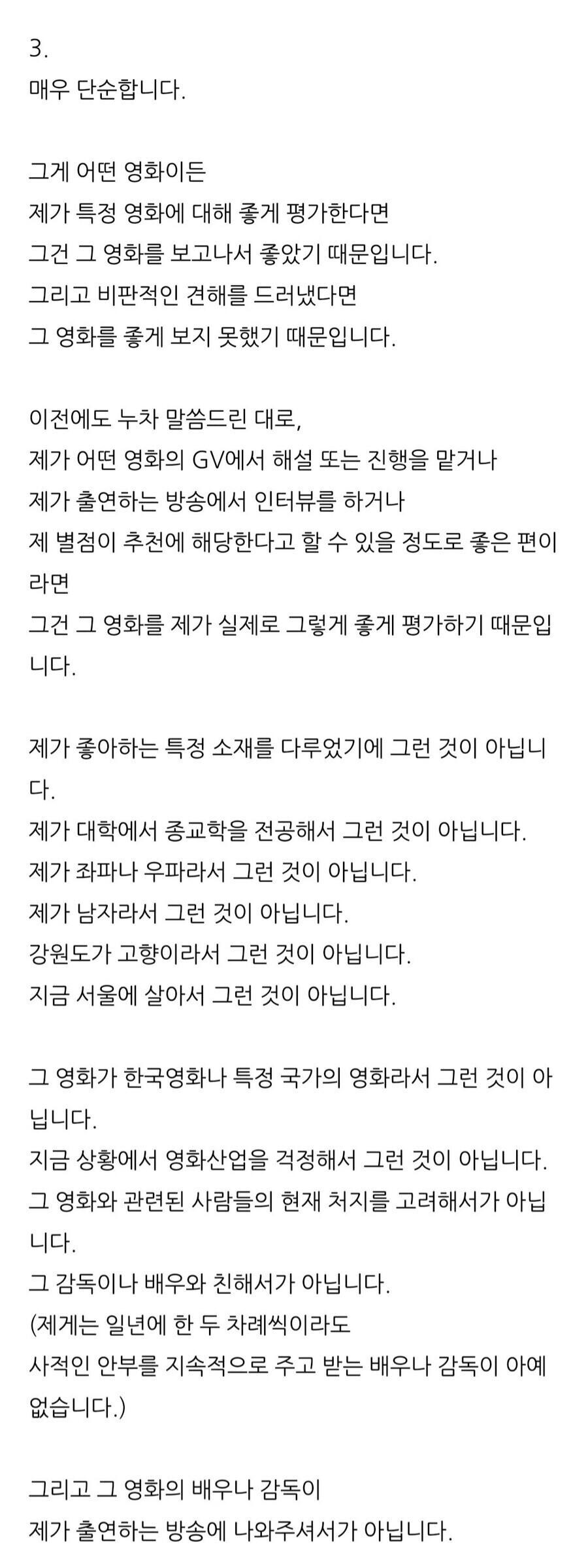 한참 전부터 국뽕 국까 페미 우파 등등에 테러당했던 이동진이 범죄도시3 점수 잘 줬다고 테러당했 때 한 말 이 정도만 말했어도 납득했을텐데 '객관적'..