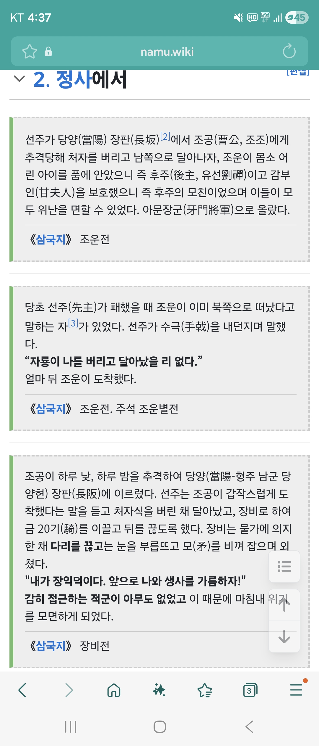 ‘장판(長阪)에서 조공(曹公, 조조)에게 추격당해’ 대놓고 추격이란 단어가 쓰이는데.. | 26.01.31 16:39 | | |