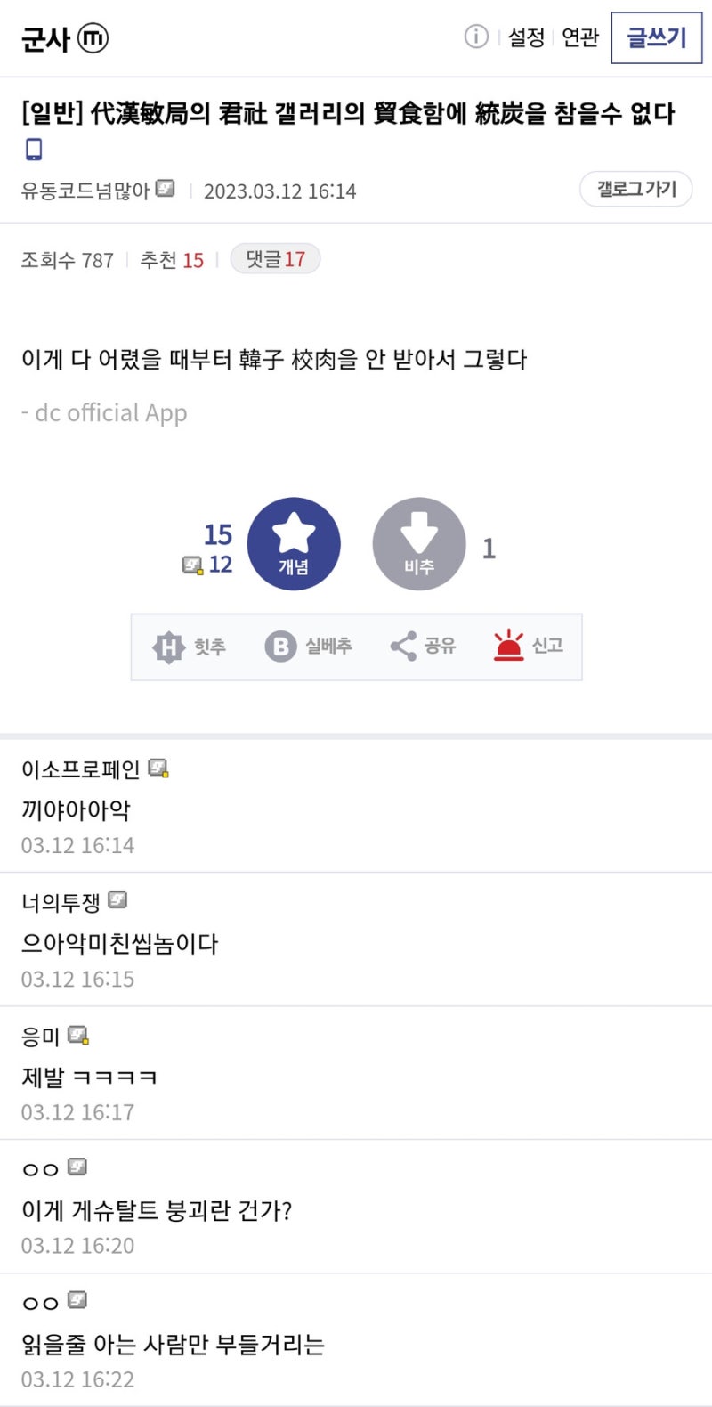 한자 배워놓으면 이렇게 비틱질도 가능함