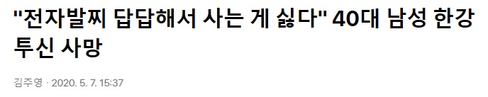 https://v.daum.net/v/jOc8uF1b3k “A씨는 출소 후 지인들과 종종 모임을 갖는 등 비교적 안정적인 심리상태를 보여왔다”며 “최근 들어 신종 코로나바이러스 감염증(코로나19) 사태로 생계가 어려워지면서 우울감이 심해져 극단적 선택을 한 것으로 보인다” | 26.02.01 12:03 | | |