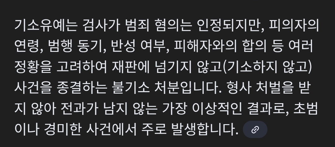 ㅇㅇ 기소 유예가 검사가 기소 자체를 안 하는 불기소 처분이라 판결이라고 하면 일단 재판에 들어갔다는 게 되어서 잘못된 제목임 ㅇㅇ | 26.02.01 15:58 | | |