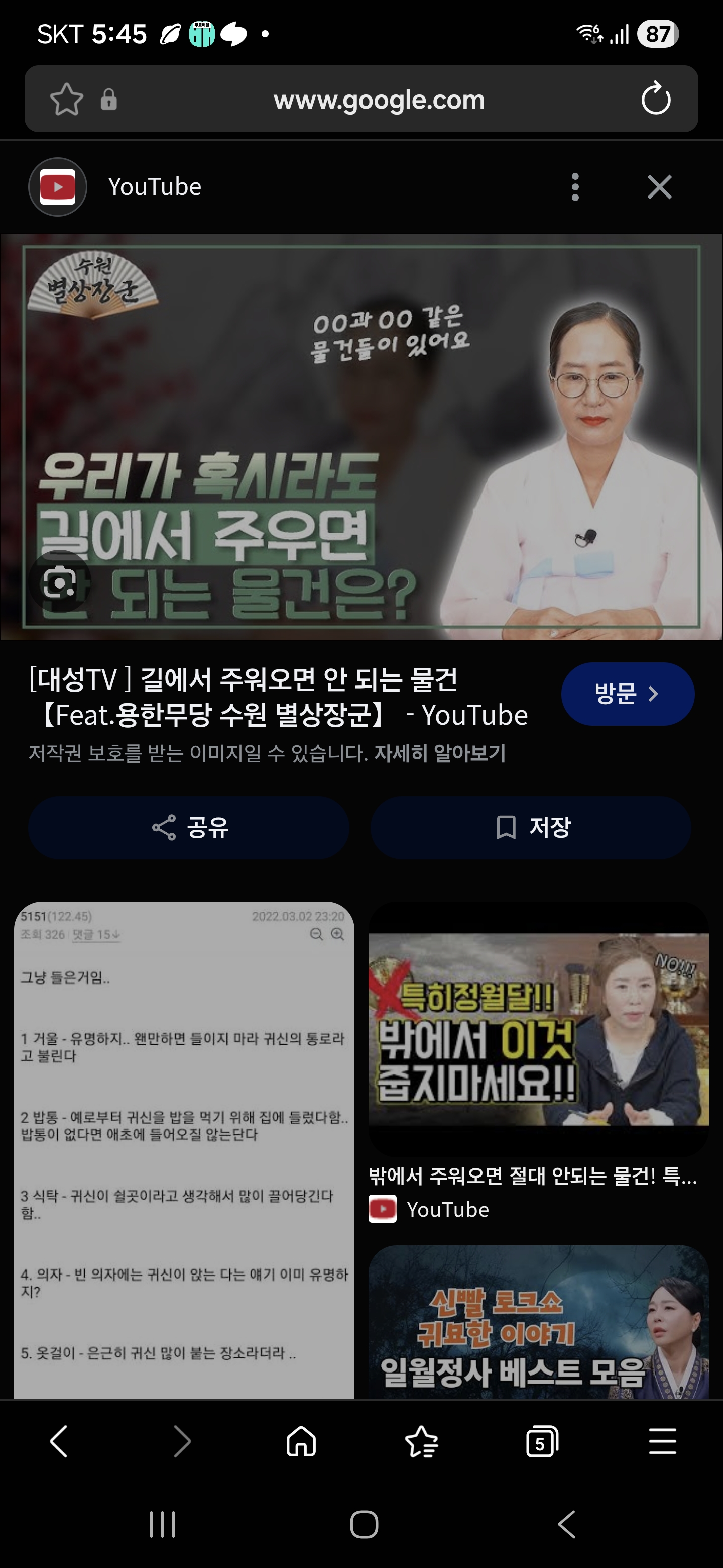 그야 저 글쓴이가 제목을 잘못 달아서 그런거니까. 무당들이 말하는 길에서 주워오지 말아야 할 것들로 검색하면 본문도 같이 나오는 걸 볼 수 있음. | 26.02.01 17:47 | | |