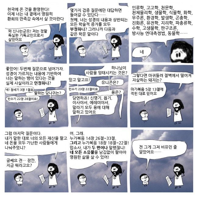 어느 종교라고 모순점이 없겠냐만 가만보면 기독교 포함 아브라함교 계통이 유독 다른 종교들보다 모순점이 심한거 같더라