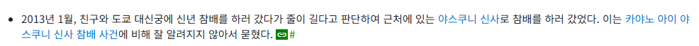근데 야스쿠니 참배한건 카야노 아이 아니었나... 하야밍도 했었음?
