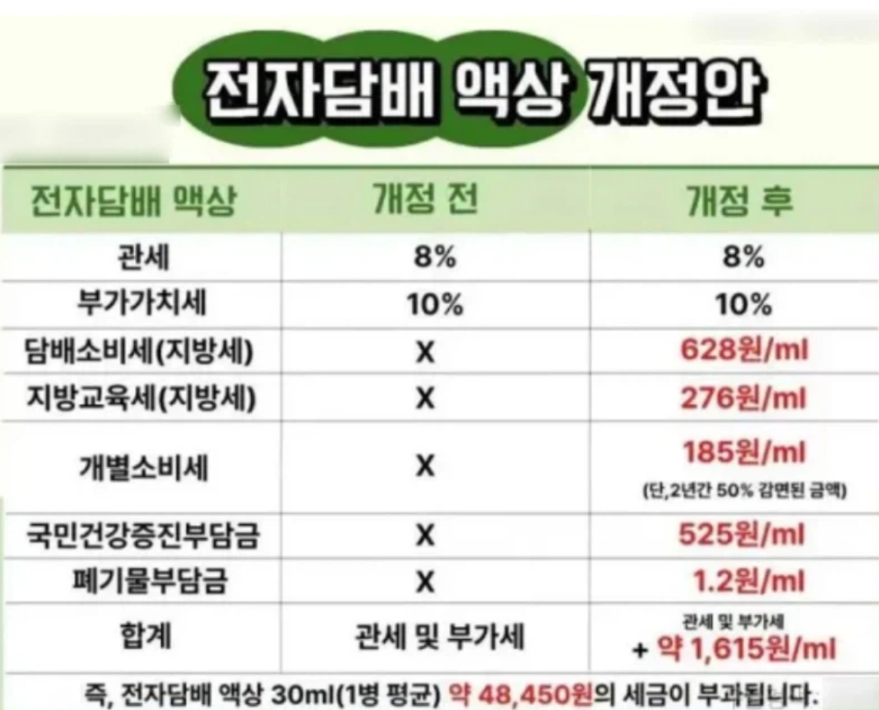 ㅁㅇ 섞어 피는 애들 때문에 뉴스에 왕창 나왔고 저거 유행 타기 시작 하면서 판매량 꽤 낮아져서 그거 빌미로 언플 꽤 많이 했음. 가격도 저렴 하기도 하고. 내가 한참 전담 필때 달에 기계값 빼고 액상 값만 해서 달에 7만원도 안들었으니. | 26.02.05 11:51 | | |