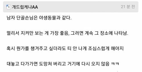 마치 야생동물과 같아서 아는척을 하면 두번다시 나타나지않는다