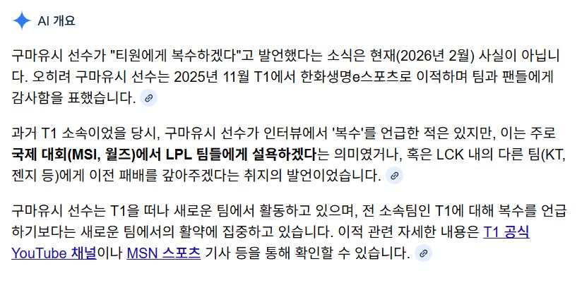 티원에게 복수는 케스파컵 지고나서 한 발언이였나 한화생명 자체 영상에서 했었을꺼임 | 26.02.06 02:27 | | |