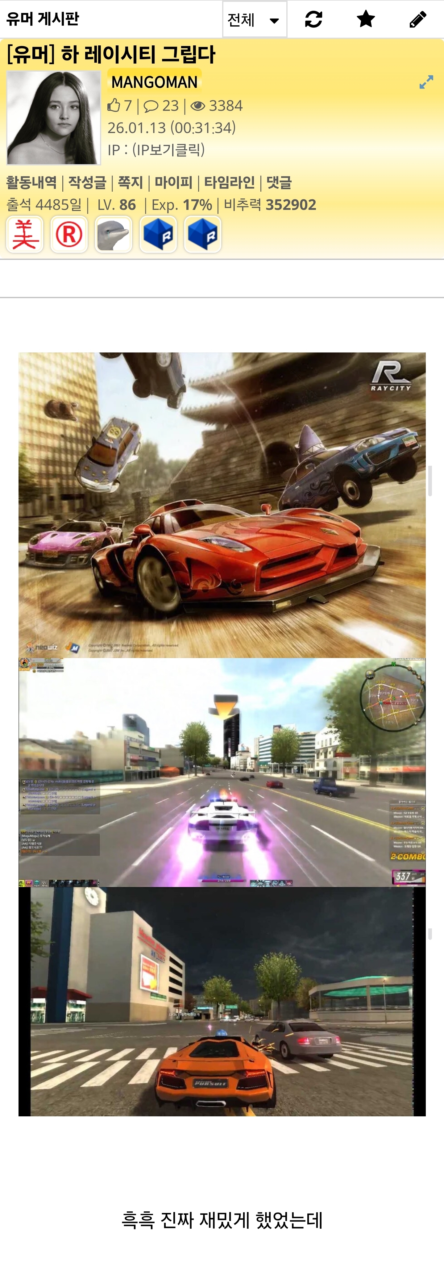 ㄹㅇ 시티레이서 아직도 서비스 하더라고 후덜덜 | 26.02.06 19:42 | | |