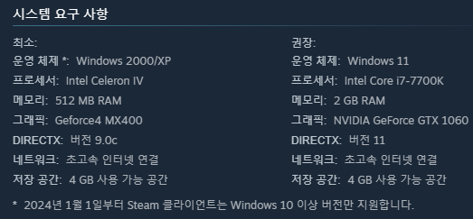 최소사양과 권장사양의 갭이 ㅋㅋㅋ 지포스4 MX400은 이제 찾기도 힘들겠네 ㅋㅋ | 26.02.06 19:16 | | |