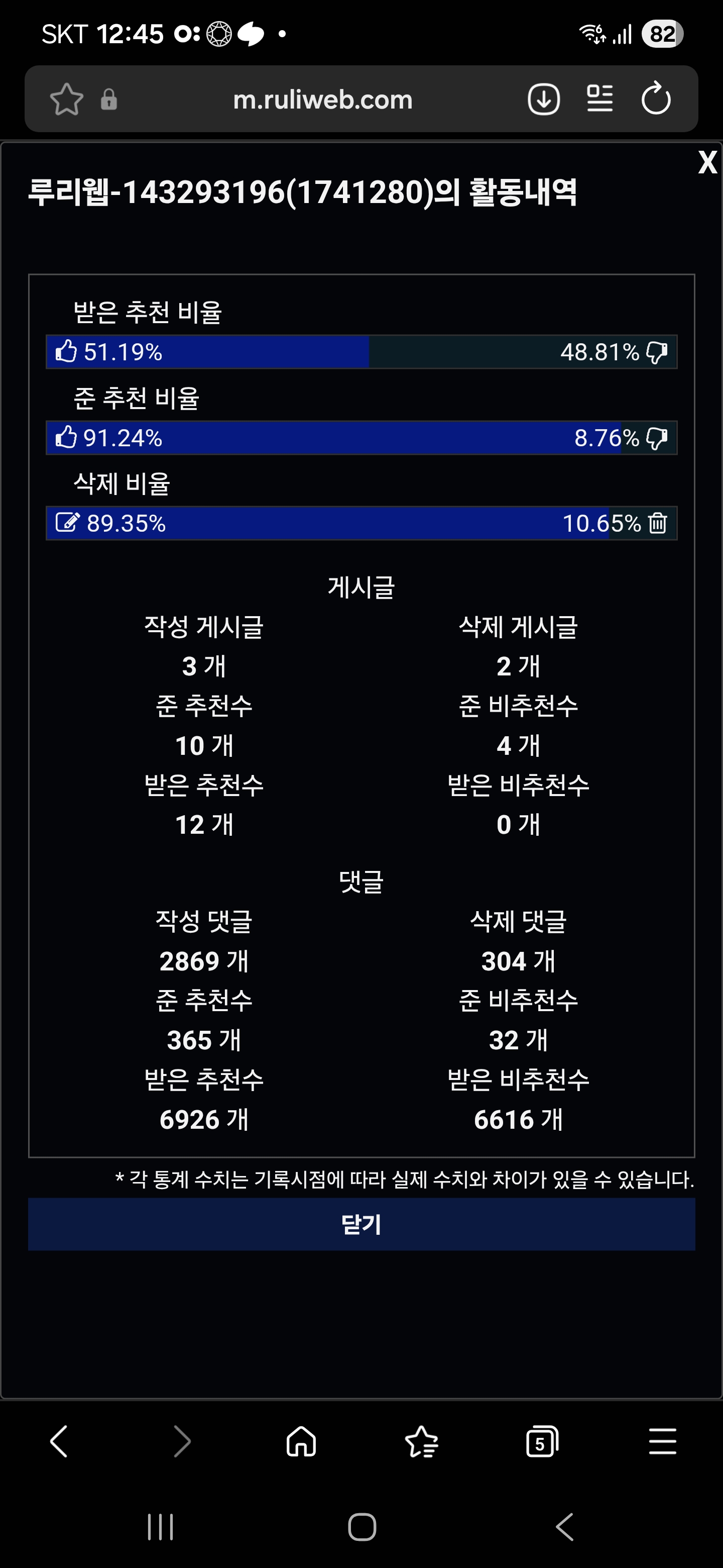 활동내역 박살난 죄수번호 분탕이 유게에서 예의 갖춰서 어따써먹게 걍 수준에 맞게 살아 친구아 | 26.02.09 01:00 | | |